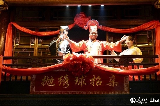 圖為拋繡球招親。人民網(wǎng) 盧鵬宇攝