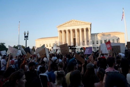 2022年6月24日,墮胎權(quán)支持者在美國首都華盛頓的聯(lián)邦最高法院外抗議。當(dāng)天,美國聯(lián)邦最高法院推翻近半個(gè)世紀(jì)前在聯(lián)邦層面確立墮胎權(quán)的判例“羅訴韋德案”。新華社記者劉杰攝