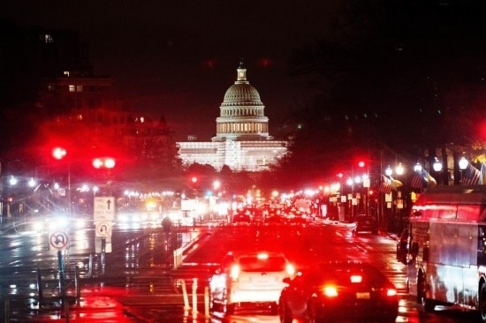 這是2022年12月22日在美國華盛頓拍攝的雨中的車輛和國會(huì)大廈。新華社記者 劉杰 攝