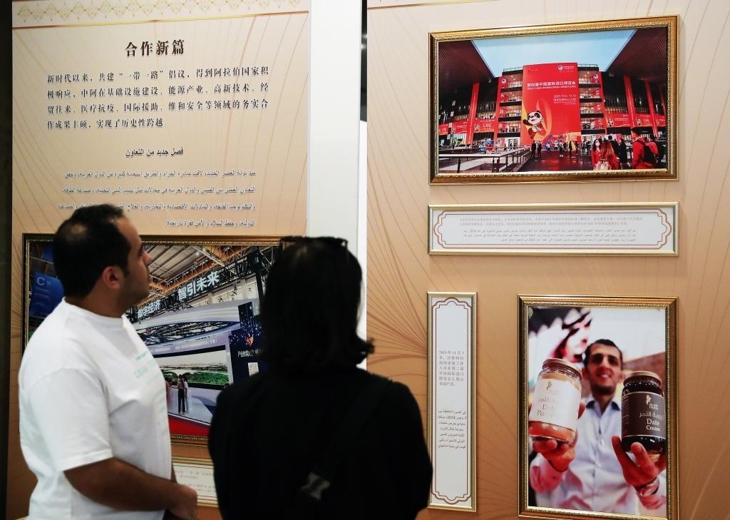 ?2022年12月7日,人們在沙特阿拉伯首都利雅得舉辦的中阿友好合作交流展上參觀。新華社記者王東震攝
