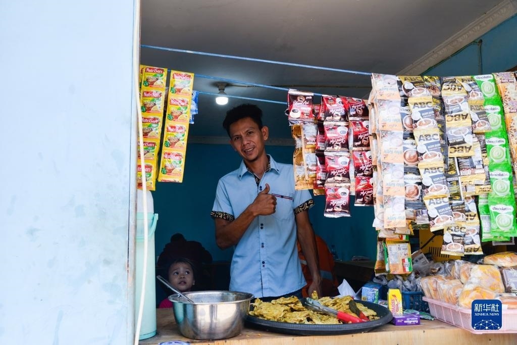 9月1日,在印度尼西亞萬隆德卡魯爾站附近,餐館老板科薩西在自己的餐館里工作。新華社記者 徐欽 攝