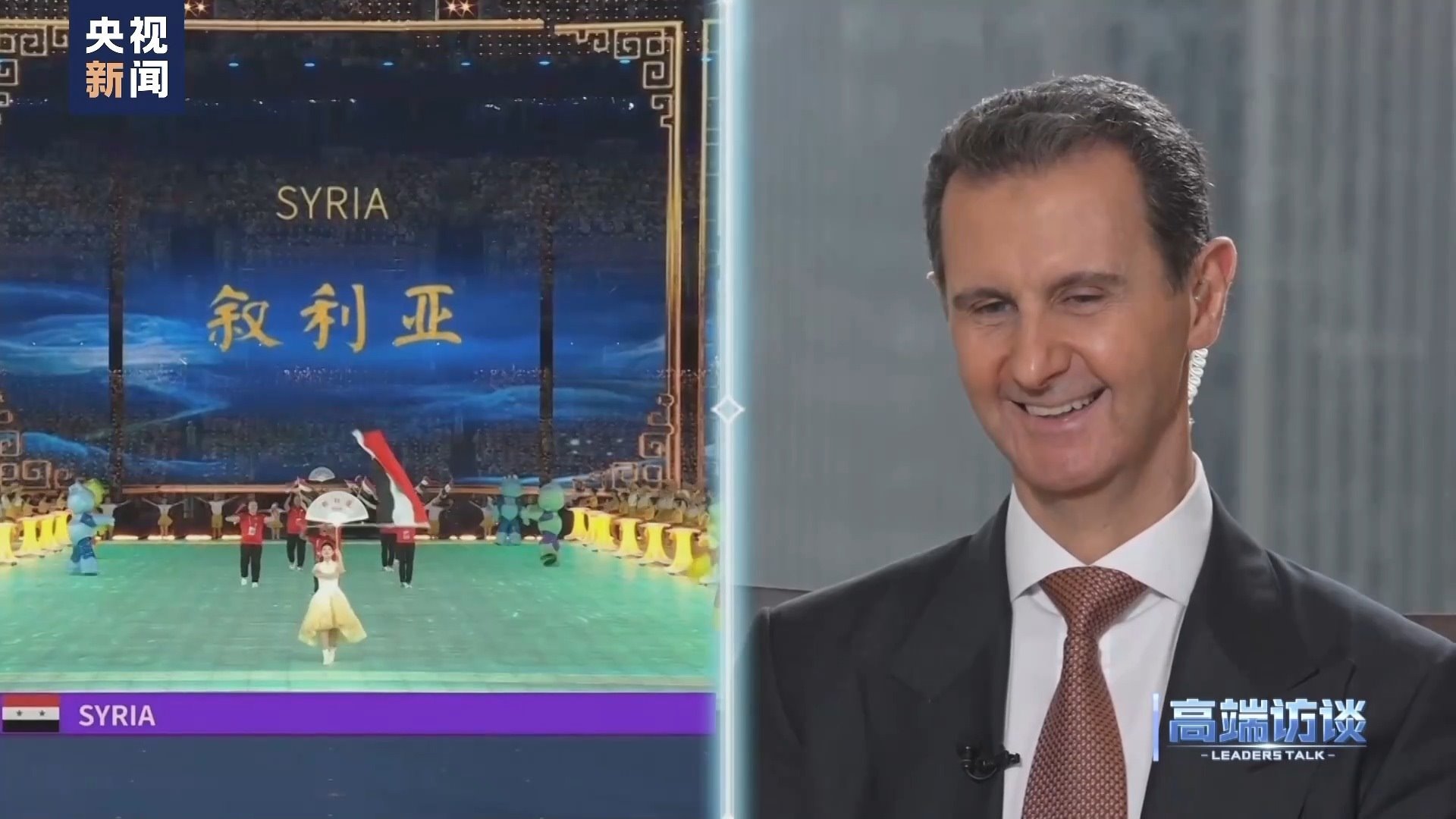 巴沙爾:感謝你給我機會,通過你們頻道、你們節(jié)目向中國人民說這些話。我想向中國人民表示祝賀,祝賀你們過去幾十年取得的成就。事實證明,中國人民是偉大的人民。我不是嘴上說說,而是事實的確如此。我們祝愿中國實現(xiàn)國家愿景,在國際上,中國的愿景也是當(dāng)今世界大多數(shù)國家的愿景。謝謝你的采訪!