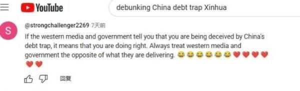 網友“強力挑戰(zhàn)者2269”直言:“如果西方政府和媒體告訴你,你陷入了中國的‘債務陷阱’,那證明你做對了。對待西方媒體和政府宣傳的信息,你得反著看?!?/p>