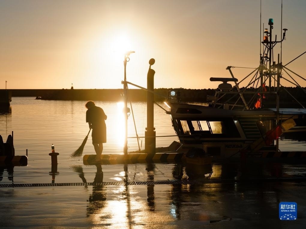 8月23日,捕魚歸來(lái)的漁民在日本福島縣新地町的漁港打掃。新華社記者 張笑宇 攝