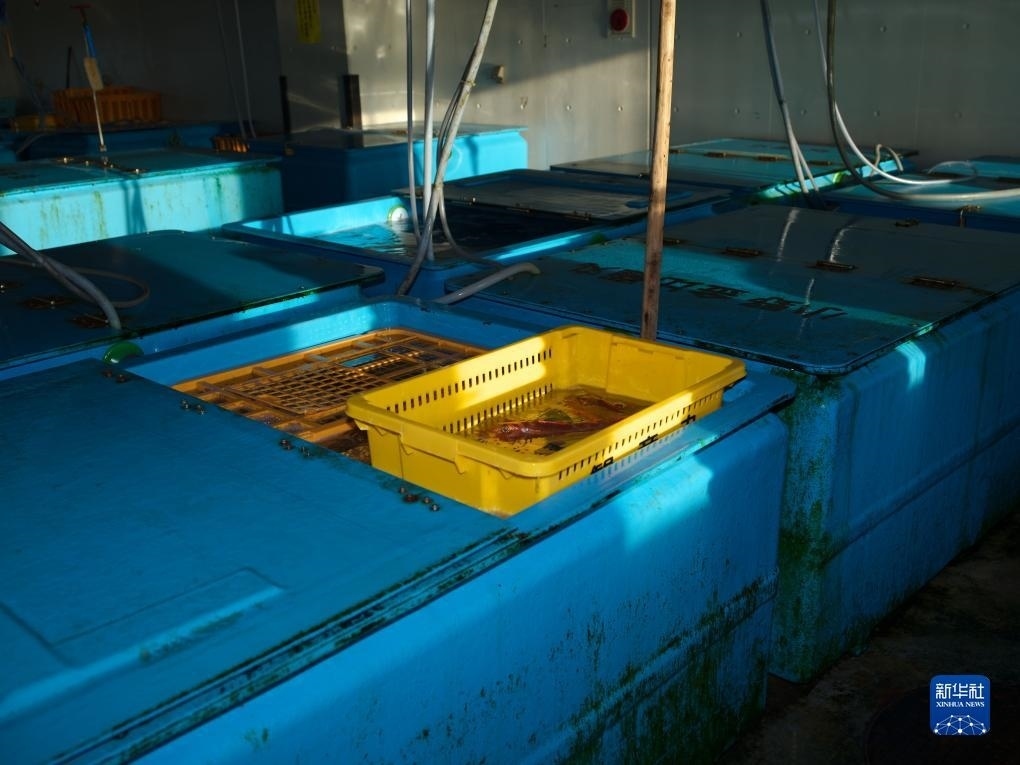 這是8月23日在日本福島縣新地町的漁港拍攝的小野春雄存放的漁獲。新華社記者 張笑宇 攝