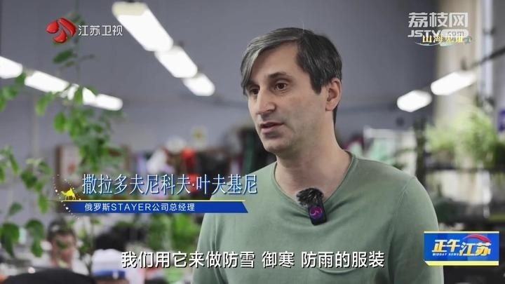 俄羅斯STAYER公司總經(jīng)理撒拉多夫尼科夫·葉夫基尼說:“這都是剛從中國(guó)運(yùn)過來的布料,它們具有防水性,透氣性,我們用它來做防雪、御寒、防雨的服裝。所有人都贊成中國(guó)的布料越來越好,近三年的計(jì)劃是加強(qiáng)與合作伙伴的聯(lián)系,擴(kuò)大布料的購(gòu)買量,期待有好的發(fā)展。”