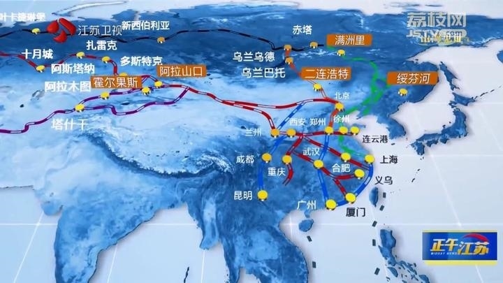 1992年,江蘇連云港開通最早發(fā)往中亞的班列;2013年,蘇州、鄭州、重慶、成都首批開通中亞班列;2016年,統(tǒng)一品牌:中歐班列。截至2023年9月底,中歐班列累計(jì)開行超7.8萬列,聯(lián)通中國(guó)境內(nèi)112個(gè)城市,通達(dá)歐洲25個(gè)國(guó)家的217個(gè)城市。