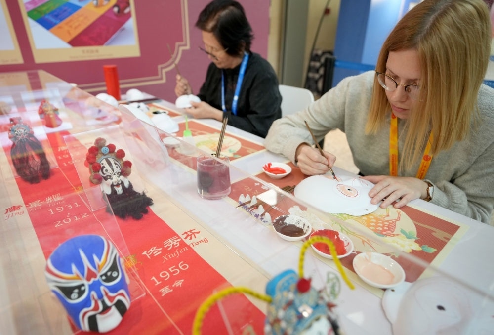 參加論壇報道的哈薩克斯坦BAQ通訊社記者古爾然·拉曼庫洛娃對新聞中心的科技文化互動展示區(qū)印象頗深。彩塑京劇臉譜、木版水印、景泰藍(lán)制作等“非遺”體驗項目,讓他們近距離感受到中國傳統(tǒng)文化的魅力。