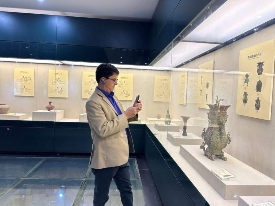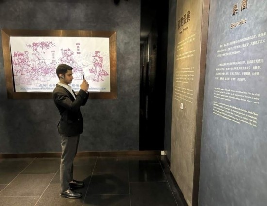 10月23日,2023“一帶一路”媒體合作論壇聯(lián)合采訪團(tuán)團(tuán)員在中國酒文化城認(rèn)真觀看展覽。本報記者 劉書文攝
