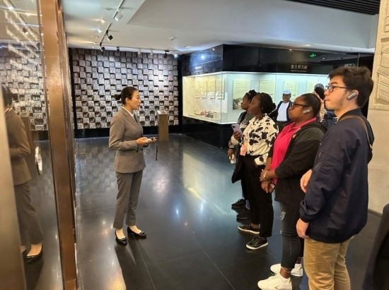 10月23日,在中國酒文化城,2023“一帶一路”媒體合作論壇聯(lián)合采訪團(tuán)團(tuán)員認(rèn)真聆聽講解。本報記者 劉書文攝