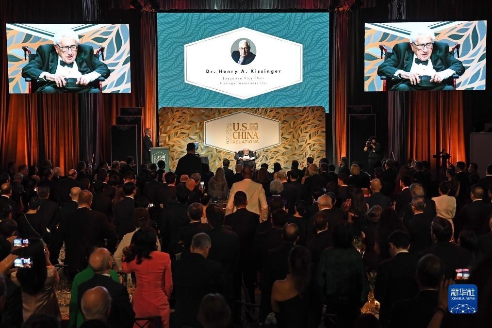 10月24日,美國前國務卿基辛格(中)出席在紐約舉行的美中關系全國委員會年度頒獎晚宴。新華社記者 李睿 攝
