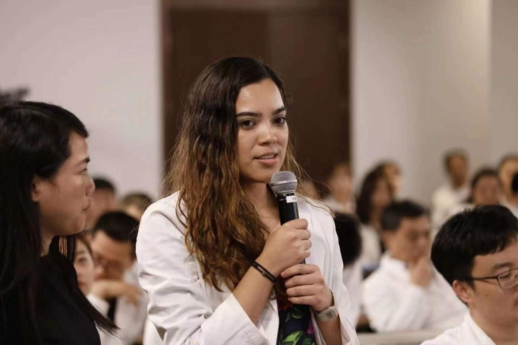 嘉賓體驗(yàn)中國(guó)書法書寫過(guò)程 (新華社記者王艷剛攝)