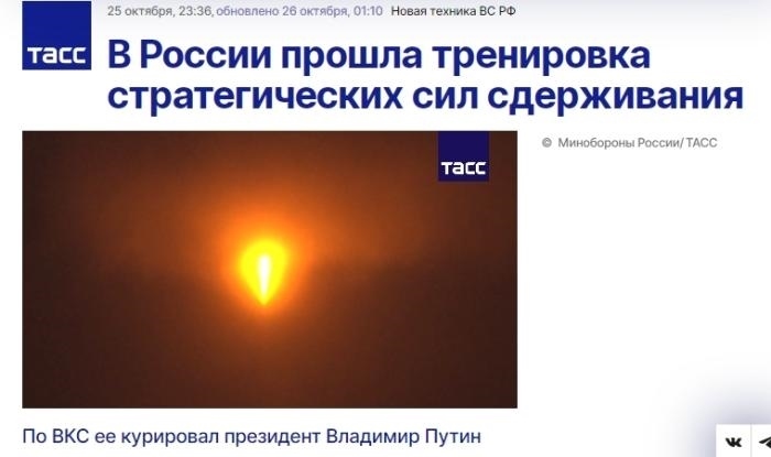 中新網(wǎng)10月27日電 據(jù)塔斯社報(bào)道,當(dāng)?shù)貢r(shí)間25日,在俄軍最高統(tǒng)帥、俄總統(tǒng)普京的指揮下,俄羅斯武裝部隊(duì)進(jìn)行了戰(zhàn)略核威懾力量演習(xí)。
