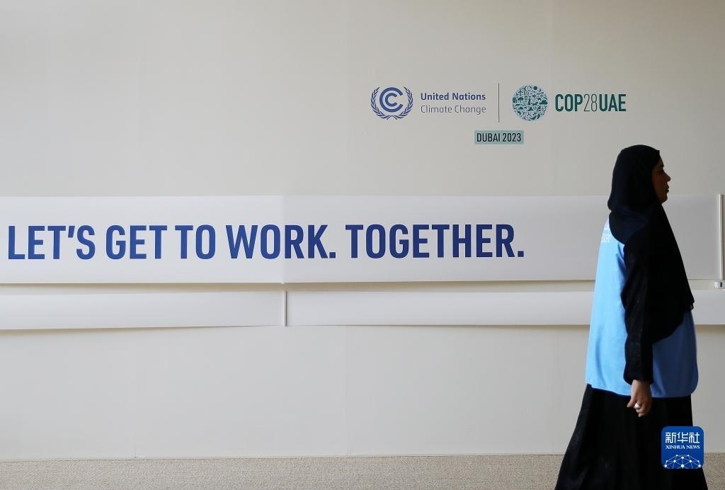 12月12日,在阿聯(lián)酋迪拜,參會人員在聯(lián)合國氣候變化迪拜大會會場內(nèi)工作。新華社記者 王東震 攝