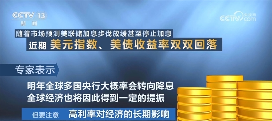 隨著市場預(yù)測美聯(lián)儲(chǔ)加息步伐放緩甚至停止加息,近期,美元指數(shù)、美債收益率雙雙回落,專家表示,明年全球多國央行大概率會(huì)轉(zhuǎn)向降息,全球經(jīng)濟(jì)也將因此得到一定的提振。但是,要注意的是,高利率對經(jīng)濟(jì)的長期影響。在國際貨幣基金組織(IMF)此前發(fā)布的《世界經(jīng)濟(jì)展望》中預(yù)計(jì),2024年全球經(jīng)濟(jì)增速為2.9%,較2023年有所下降。