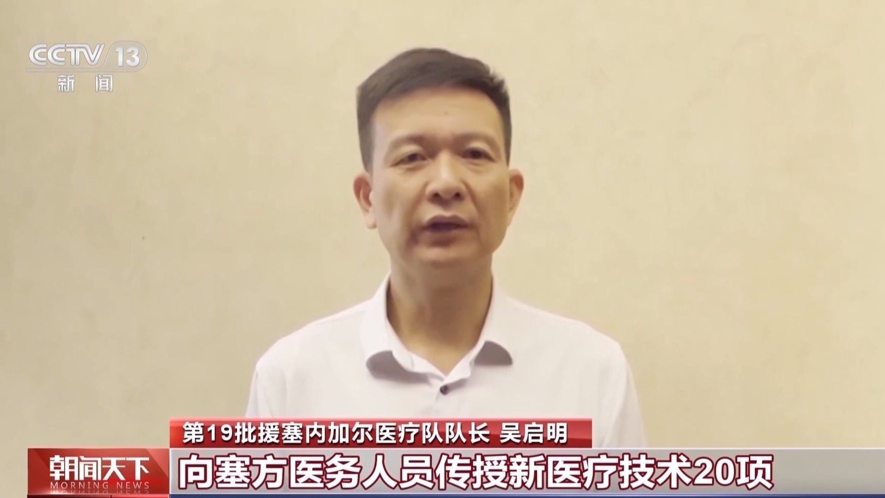 第19批援塞內(nèi)加爾醫(yī)療隊隊長 吳啟明:援塞兩年來,我們以推進中非對口醫(yī)院合作項目為契機,組織開展巡診、義診活動,向塞方醫(yī)護人員傳授新醫(yī)療技術20項,填補了多項技術空白,全體隊員被塞內(nèi)加爾政府授予國家雄獅勛章。接下來我們將把接力棒傳遞好,持續(xù)以仁心仁術造福當?shù)厝嗣?,為增進中塞友誼作出新的貢獻。