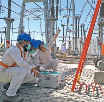 在巴基斯坦默蒂亞里—拉合爾直流輸電項(xiàng)目現(xiàn)場(chǎng),中巴工程師對(duì)設(shè)備開(kāi)展日常檢修。本報(bào)巴基斯坦分社 薩義德·邁赫迪攝