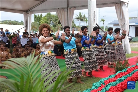 1月12日,表演者在斐濟(jì)蘇瓦的活動現(xiàn)場跳傳統(tǒng)舞蹈。新華社發(fā)(桑欽龍攝)