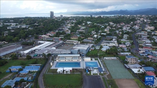 這是1月12日在斐濟(jì)蘇瓦航拍的中方援建翻修的室外游泳池。新華社發(fā)(桑欽龍攝)