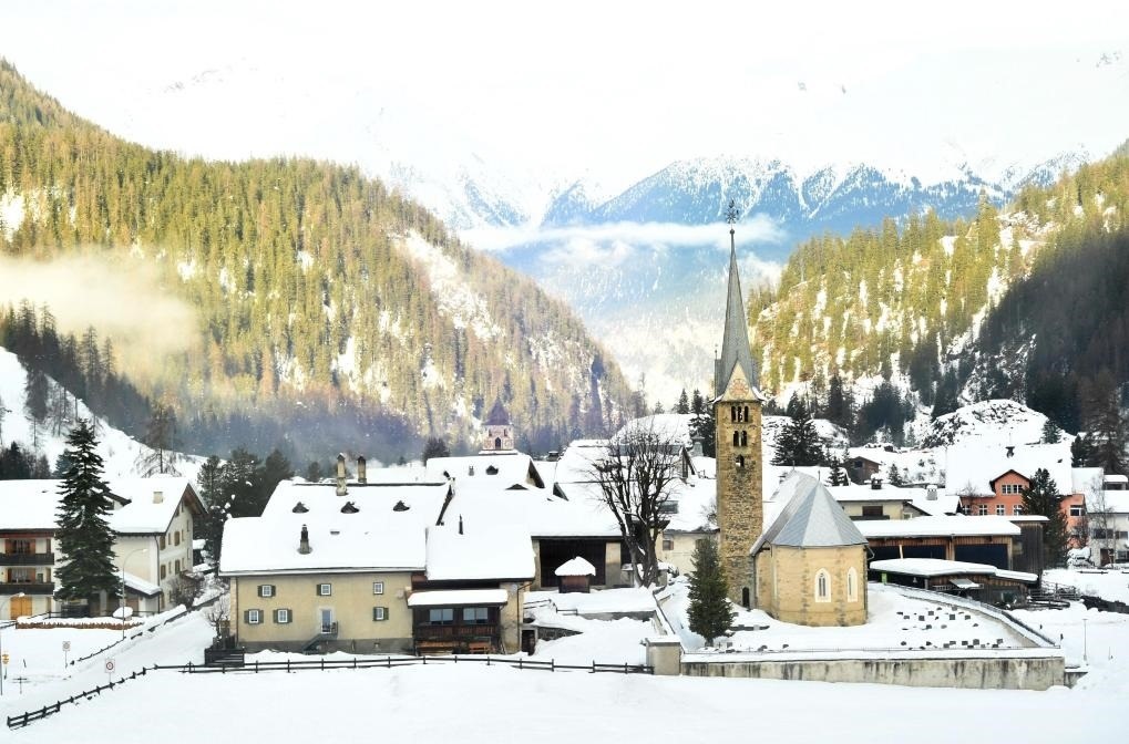這是1月18日在瑞士東部圣莫里茨通往達沃斯的火車上拍攝的窗外雪景。新華社記者 連漪 攝