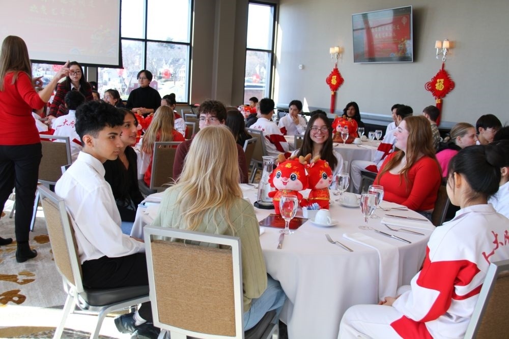 9日下午,在共慶春節(jié)的活動(dòng)現(xiàn)場(chǎng),馬斯卡廷高中校長(zhǎng)瑞安·卡斯?fàn)柛嬖V記者,學(xué)校1月下旬已組織24名學(xué)生赴華交流,先后參觀訪問(wèn)了北京、上海和河北省。他本人正在籌備4月帶領(lǐng)50名學(xué)生赴華交流。