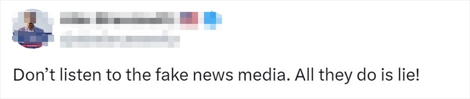 針對(duì)報(bào)道了特朗普這一言論的美國(guó)媒體,有網(wǎng)民留言:“不要聽(tīng)那些虛假新聞媒體說(shuō)的,他們說(shuō)的都是謊言。”