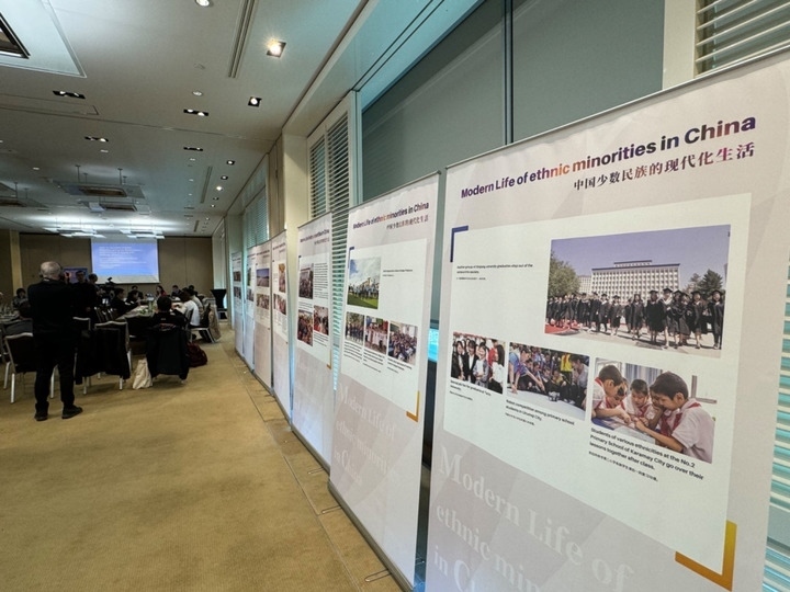 ?3月14日,由中國人權研究會主辦的“現(xiàn)代化發(fā)展中的少數(shù)民族受教育權——以中國西藏和新疆為例”主題邊會在瑞士日內(nèi)瓦舉行。圖為會議現(xiàn)場舉辦的“中國少數(shù)民族的現(xiàn)代化生活”圖片展。新華社記者石松攝