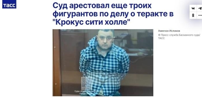 據(jù)塔斯社報道,當(dāng)?shù)貢r間25日,莫斯科巴斯曼區(qū)法院已批準對這3名恐襲事件涉案人員羈押候?qū)?,?月22日。