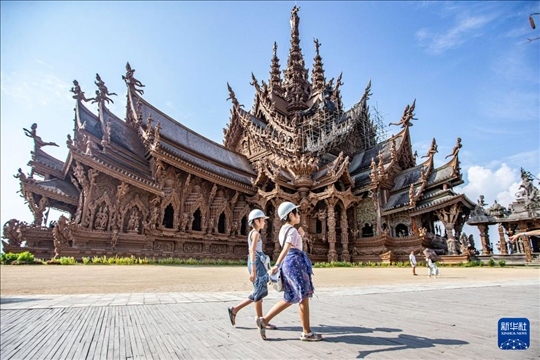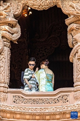 3月29日,游客在泰國芭堤雅真理圣殿游覽。新華社記者 王騰 攝