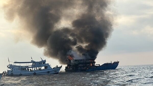 當(dāng)?shù)貢r間4月4日,一艘從泰國素叻他尼府碼頭駛往濤島的游船在距離濤島海岸約3海里處發(fā)生火災(zāi)。船上有泰國及外國乘客共97人,另有11名船員,同時載有貨物。