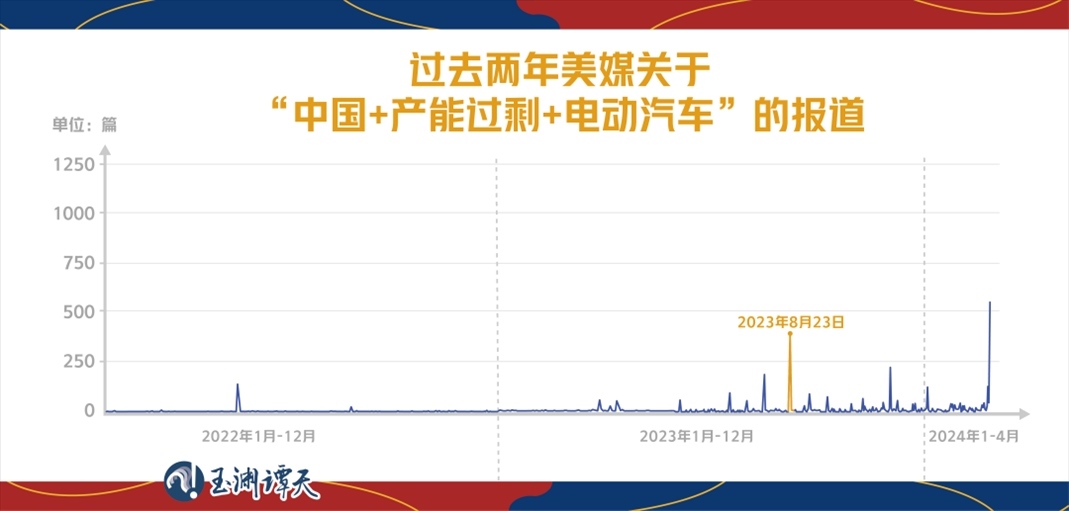 而2023年至今,美媒對(duì)所謂中國(guó)“產(chǎn)能過(guò)剩論”的報(bào)道轉(zhuǎn)移到了中國(guó)的“新能源產(chǎn)品”上,其中,新能源汽車(chē)尤為突出。