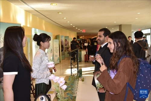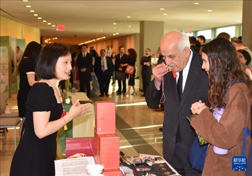 5月21日,在位于紐約的聯(lián)合國總部,人們參加“茶和天下”國際茶日展示和慶?;顒?dòng)。新華社記者 王建剛 攝