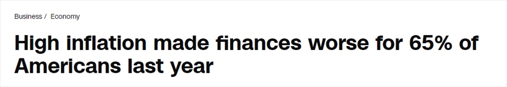 美聯(lián)儲近日發(fā)布的《2023年美國家庭經(jīng)濟狀況報告》(Economic Well-Being of US Households)顯示,65%的美國家庭的財務狀況因通脹而惡化,其中19%的人認為財務狀況“嚴重惡化”。