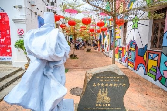 這是2019年12月20日在馬來西亞馬六甲拍攝的鄭和·朵云軒(馬六甲)藝術(shù)館外的馬中友好植樹廣場。600多年前,鄭和五次駐節(jié)馬六甲,由他帶到這片土地上的中華文化如今已深深融入當(dāng)?shù)囟嘣幕?。新華社記者朱煒攝