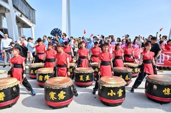 這是5月2日在馬來西亞雪蘭莪州巴生港拍攝的二十四節(jié)令鼓表演。新華社記者程一恒攝