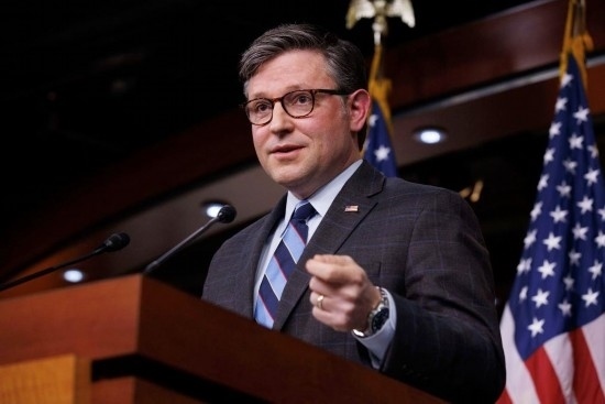 2月6日,在美國華盛頓,美國國會眾議院議長邁克·約翰遜舉行記者會。新華社發(fā)(亞倫攝)
