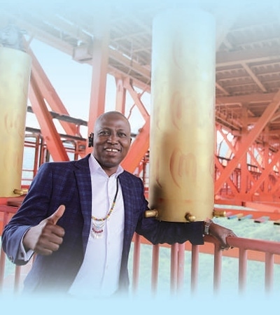 在位于安順市的壩陵河大橋,尼日利亞駐上??傤I(lǐng)事館商務(wù)專(zhuān)員哈桑在觀光步道中央拍照留念。