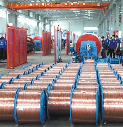 固達(dá)電線(xiàn)電纜(集團(tuán))有限公司二期新能源線(xiàn)纜車(chē)間內(nèi)整齊擺放著銅導(dǎo)體。以上圖片均為本報(bào)記者陳尚文攝