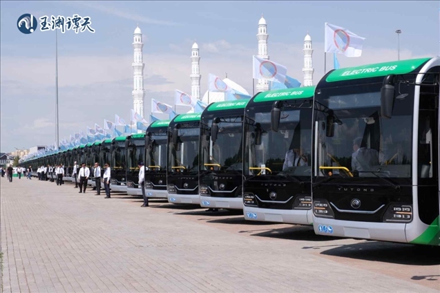 中哈合作帶來的一個改變是,2022年,阿斯塔納的城市路線上投放了100多輛電動公交車,2023年底,阿斯塔納的電動公交車翻了一倍還多。