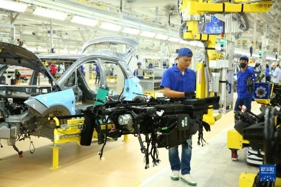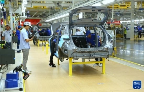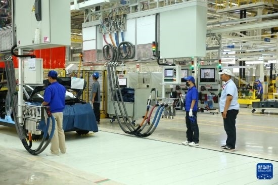 7月4日,工人在位于泰國(guó)羅勇府的比亞迪泰國(guó)工廠工作。新華社記者 孫瑋彤 攝