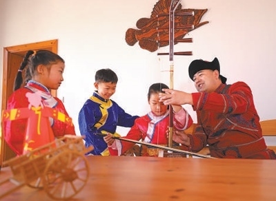 哈拉新村村民在教當地孩子演奏傳統(tǒng)樂器。齊齊哈爾大學孟加拉國籍留學生 衣睿實攝“在哈拉新村,我看到四弦琴造型的村口大門、魚叉狀的路燈,還有整整齊齊的‘介字房’……這里獨特的民族文化、濃郁的鄉(xiāng)土風情,給我留下了深刻印象。當地既保留傳統(tǒng)的達斡爾族人文特征,又開發(fā)文化體驗館、民族特色美食等現代旅游資源,重視文化保護和傳承的做法值得借鑒?!?/p>