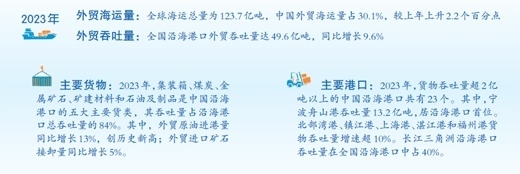 ——貨物吞吐量超2億噸以上的中國(guó)沿海港口共有23個(gè),沿海港口航道已實(shí)現(xiàn)“一圖覆蓋”,沿海水上安全通信“一網(wǎng)貫通”
