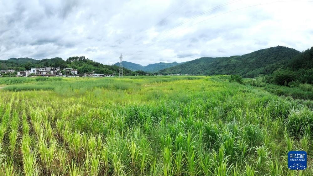 這是8月21日拍攝的位于福建省永泰縣清涼鎮(zhèn)北斗村的“珍農(nóng)菌草富泉羊循環(huán)產(chǎn)業(yè)示范基地”(無(wú)人機(jī)照片)。