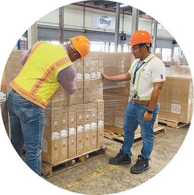 “海運(yùn)+海外倉(cāng)”是中遠(yuǎn)海運(yùn)探索出的“一站式”全程綜合物流服務(wù)模式,集海運(yùn)、倉(cāng)儲(chǔ)、報(bào)關(guān)等服務(wù)于一體。圖為在巴拿馬科隆自由貿(mào)易區(qū)內(nèi)的中遠(yuǎn)海運(yùn)海外倉(cāng),工作人員對(duì)抵達(dá)的貨物進(jìn)行質(zhì)檢??逅埂ぐ嗟夏釘z