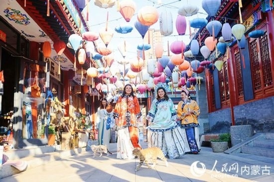 大盛魁博物館整體建筑風(fēng)格為清末民國至上世紀(jì)40年代歸化城(今呼和浩特市)街區(qū)風(fēng)貌。外媒記者“小姐姐”們現(xiàn)場“換裝”,體驗(yàn)各式中華傳統(tǒng)服飾。來自巴勒斯坦國家電視臺(tái)的主持人拉尼婭·哈姆達(dá)拉,換了一身鮮艷的橘色服飾,行走園中,宛若“穿越”時(shí)光。