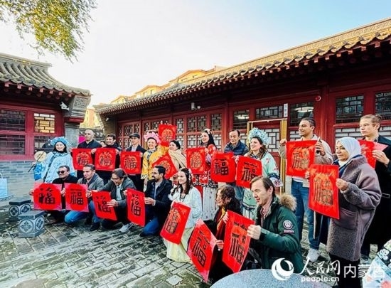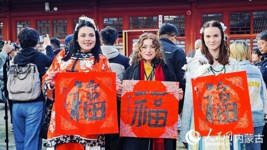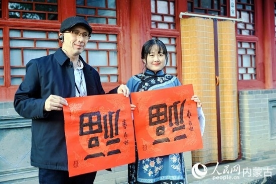 人民網(wǎng)呼和浩特10月23日電 (張聿修、孟佳澍、張雪冬、實習(xí)生朱昱晗)?!暗埂绷耍扛!暗健绷耍[弄著手中的福字,了解到關(guān)于福字的寓意,塔吉克斯坦記者烏斯蒙·阿卜杜恰洪洛夫露出驚訝的表情,感嘆中國語言蘊含的智慧。