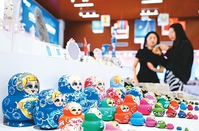 在位于山東青島的中國(guó)傳化(上合)國(guó)際物流港展廳,來(lái)自上合國(guó)家的特色商品在展出銷(xiāo)售。新華社記者 李紫恒攝