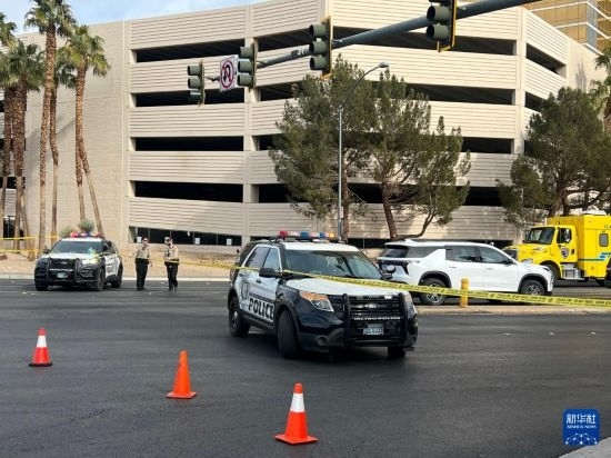 1月1日,在美國(guó)內(nèi)華達(dá)州拉斯維加斯,警方封鎖發(fā)生電動(dòng)汽車(chē)爆炸事件的特朗普酒店門(mén)前區(qū)域。新華社記者 譚晶晶 攝