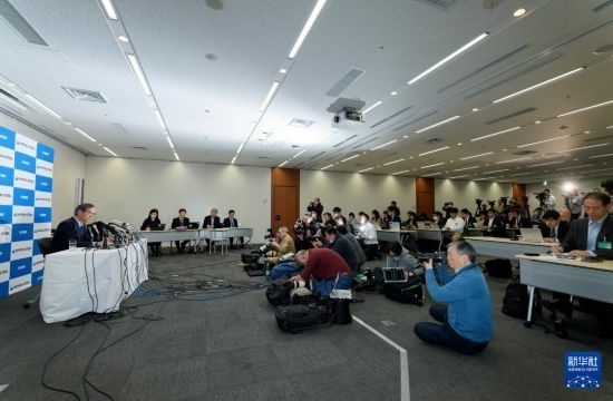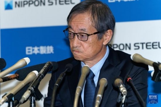 1月7日,在日本東京,日本制鐵公司會(huì)長兼首席執(zhí)行官橋本英二在記者會(huì)上發(fā)言。新華社記者 張笑宇 攝
