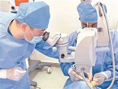 日前,埃塞俄比亞“光明行”項目在蒂魯內(nèi)什—北京醫(yī)院順利實施。在為期20余天的義診活動中,來自天津市眼科醫(yī)院的“光明行”專家團隊和第二十五批中國援埃塞醫(yī)療隊憑借精湛醫(yī)術(shù)和豐富經(jīng)驗,確保每一例白內(nèi)障手術(shù)都取得圓滿成功。專家團隊還向當?shù)孛癖娖占鞍變?nèi)障防治知識,與當?shù)蒯t(yī)院開展眼科診療技術(shù)交流,分享先進技術(shù)和管理經(jīng)驗,為提升埃塞俄比亞眼科醫(yī)療水平貢獻力量。埃塞俄比亞眼科醫(yī)生在中國專家的指導(dǎo)下參與手術(shù),收獲經(jīng)驗。當?shù)匮劭漆t(yī)生伊利卡爾·貝哈努表示:“我們從中國醫(yī)生那里學到了高水平的專業(yè)技術(shù)?!?/p>